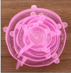 Silicone Fresh-keeping Cover Universal Bowl Cover Sealed Transparent Cover Household Fresh-keeping 6-piece Microwave Oven Cover Plastic Wrap (Option: 6PC Pink)